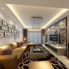 现代简约风格的装修设计,一定要展现出一种即现代又是时尚的感觉,在客厅的装饰当中,采用平顶式的石膏板吊顶,背景色彩以白色为主,打造出一个光鲜明亮的居室环境,一盏亮丽的水晶吊灯,更是为空间铺设一层亮丽的风景线,洁白的地砖与吊顶上下相互呼应,沙发背景墙是照片墙的设计,从侧面也为空间平添了一份艺术氛围,而电视背景墙铺贴浅色墙砖,也彰显出一种明亮大气的感觉,在搭配上烤漆电视柜,空间所装饰的质感也显得更加的突出,个性的地毯铺设,引人注目的同时又不显得张扬,并且暖色系的沙发布艺,更是展现出一种温馨的氛围。