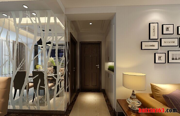 现代简约风格的装修设计,一定要展现出一种即现代又是时尚的感觉,在客厅的装饰当中,采用平顶式的石膏板吊顶,背景色彩以白色为主,打造出一个光鲜明亮的居室环境,一盏亮丽的水晶吊灯,更是为空间铺设一层亮丽的风景线,洁白的地砖与吊顶上下相互呼应,沙发背景墙是照片墙的设计,从侧面也为空间平添了一份艺术氛围,而电视背景墙铺贴浅色墙砖,也彰显出一种明亮大气的感觉,在搭配上烤漆电视柜,空间所装饰的质感也显得更加的突出,个性的地毯铺设,引人注目的同时又不显得张扬,并且暖色系的沙发布艺,更是展现出一种温馨的氛围。