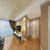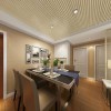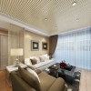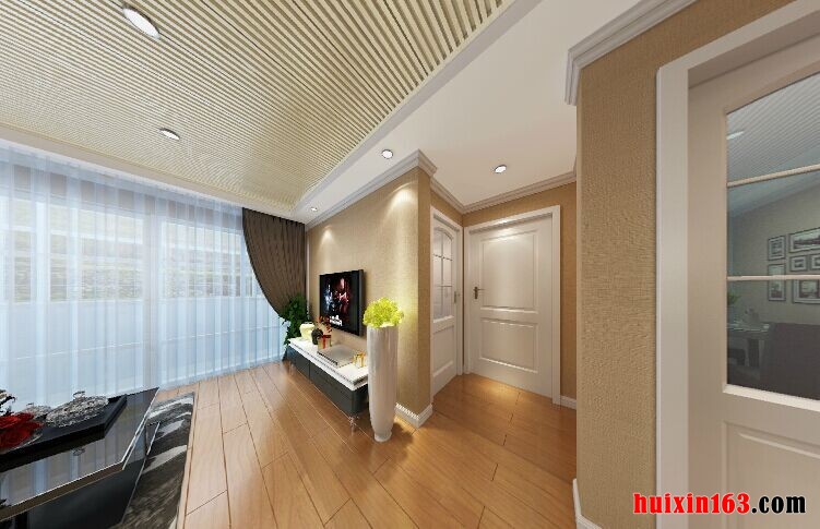 简约风的装修布置,所展现的是一种现代生活所追求的时尚与潮流感,在客厅的装饰当中,简单的家具陈设,浅色系的色彩搭配,营造出一种浪漫、清新的氛围,个性的吊顶设计,在视觉感观上给人展现出一种动态感,实木铺设的地板,在装饰效果以及体验效果上都有着良好的感觉,落地窗的设计搭配上轻质的窗帘,让空间的采光显得比较明亮透彻,整个空间的色彩基本上是以暖色系为主,为空间展现出一种浪漫温馨的氛围,墙面四周射灯的安装,若影若现的灯光,犹如一种繁星点缀的效果,电视柜旁一盆装饰花卉的摆放,在通过灯光的营造也展现出一种别样的美感。