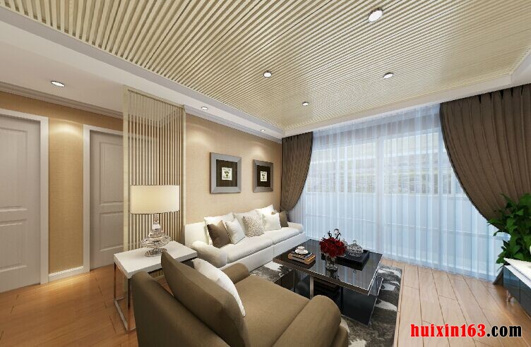 简约风的装修布置,所展现的是一种现代生活所追求的时尚与潮流感,在客厅的装饰当中,简单的家具陈设,浅色系的色彩搭配,营造出一种浪漫、清新的氛围,个性的吊顶设计,在视觉感观上给人展现出一种动态感,实木铺设的地板,在装饰效果以及体验效果上都有着良好的感觉,落地窗的设计搭配上轻质的窗帘,让空间的采光显得比较明亮透彻,整个空间的色彩基本上是以暖色系为主,为空间展现出一种浪漫温馨的氛围,墙面四周射灯的安装,若影若现的灯光,犹如一种繁星点缀的效果,电视柜旁一盆装饰花卉的摆放,在通过灯光的营造也展现出一种别样的美感。