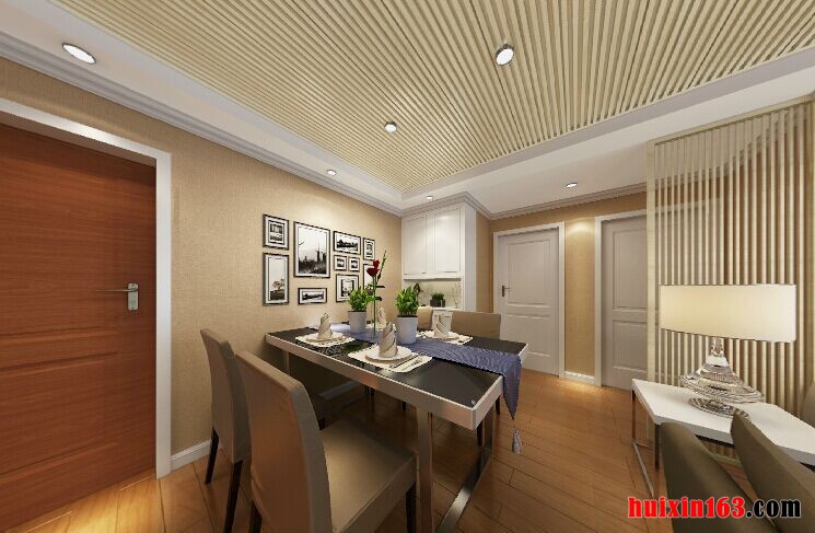 简约风的装修布置,所展现的是一种现代生活所追求的时尚与潮流感,在客厅的装饰当中,简单的家具陈设,浅色系的色彩搭配,营造出一种浪漫、清新的氛围,个性的吊顶设计,在视觉感观上给人展现出一种动态感,实木铺设的地板,在装饰效果以及体验效果上都有着良好的感觉,落地窗的设计搭配上轻质的窗帘,让空间的采光显得比较明亮透彻,整个空间的色彩基本上是以暖色系为主,为空间展现出一种浪漫温馨的氛围,墙面四周射灯的安装,若影若现的灯光,犹如一种繁星点缀的效果,电视柜旁一盆装饰花卉的摆放,在通过灯光的营造也展现出一种别样的美感。